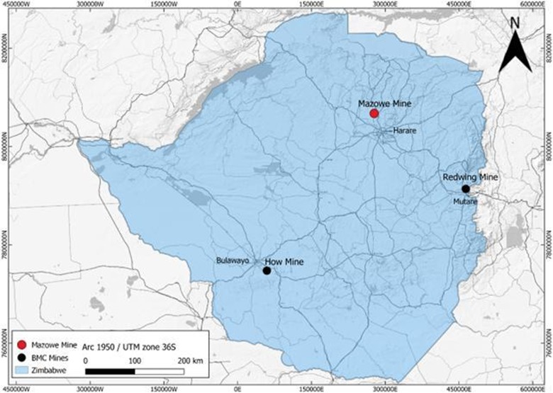 All claims are held by RMC Zimbabwe, with the exception of Toronto, Monarch, and Champion which have recently been sold by (BCM Limited).