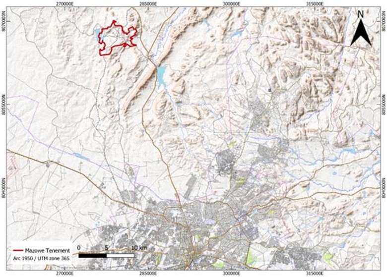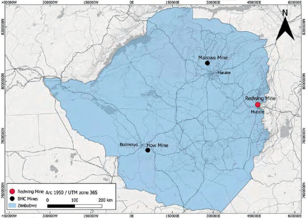 RGM is located 20 km north-northeast of the city of Mutare in Manicaland Province, in the Mutare Mining District of Zimbabwe (grid reference – 658140). It is about 265 km southeast of the capital city, Harare. The location is at an altitude of about 1,200 amsl.