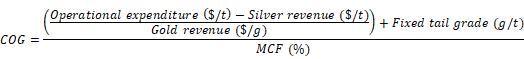 | — | The COG used for Mineral Resource estimation seem reasonable on face value, however, the methodology used for determination of these values has not been reported and requires further explanation. |